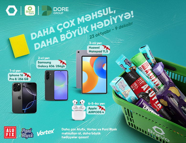 Bu 45 günlük kampaniya müddətində Bravo Club üzvləri Alufix, Pani Blysk və Vortex markalarına məxsus məhsulları daha çox alaraq dəyərli hədiyyələr qazanmaq imkanı əldə edəcəklər.