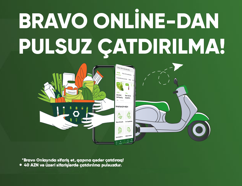 Order at least 40 AZN from the Bravo Online section of the Bravo app and have your order delivered to your door without any delivery fees!